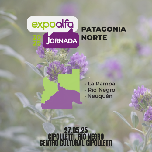 Con una gran expectativa, el próximo 27 de mayo se desarrollará la Jornada ExpoAlfa Patagonia Norte, un evento organizado por TodoAlfalfa y ExpoAlfa junto a los gobiernos de Río Negro, La Pampa, Neuquén, el Centro PyME ADENEU, la Cámara Argentina de Alfalfa, el INTA y Universidades.
